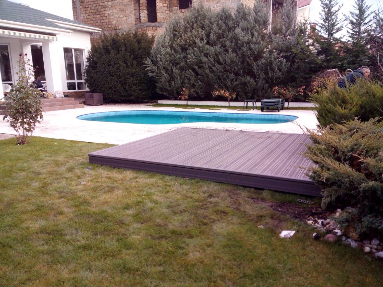 Покрытие террасной доской HOLZHOF VERONA у бассейна, г.Симферополь